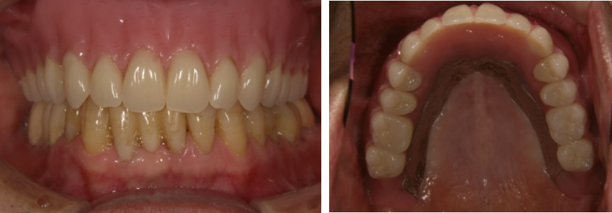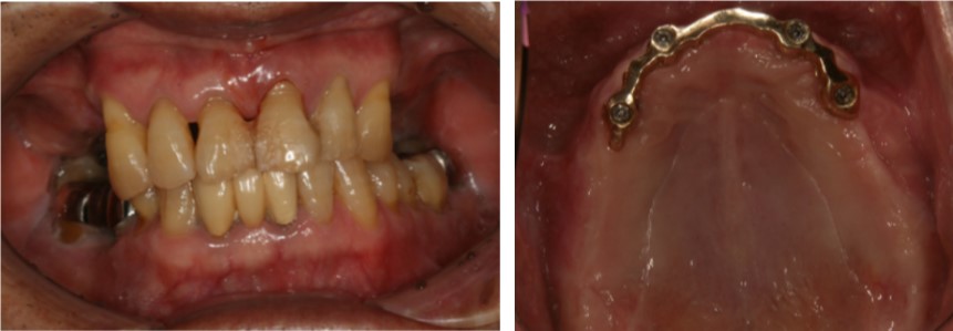 | 治療の詳細 | 仕事が忙しく、歯科医院に相談できなかったため、放置していた歯周病が重度に発展し歯がぐらぐらの状態になった。インプラントと精密入れ歯を併用して、よく噛めるようになった。 |